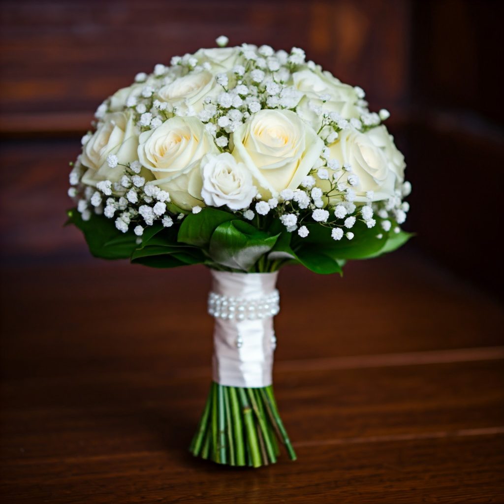 Dieser Strauß ist nicht nur ein wunderschönes Accessoire, sondern auch ein Ausdruck der Liebe und des Engagements der Braut und des Bräutigams. Er ist ein Symbol für ihre gemeinsame Zukunft und ein Versprechen auf eine glückliche und erfüllte Ehe.ey might have.